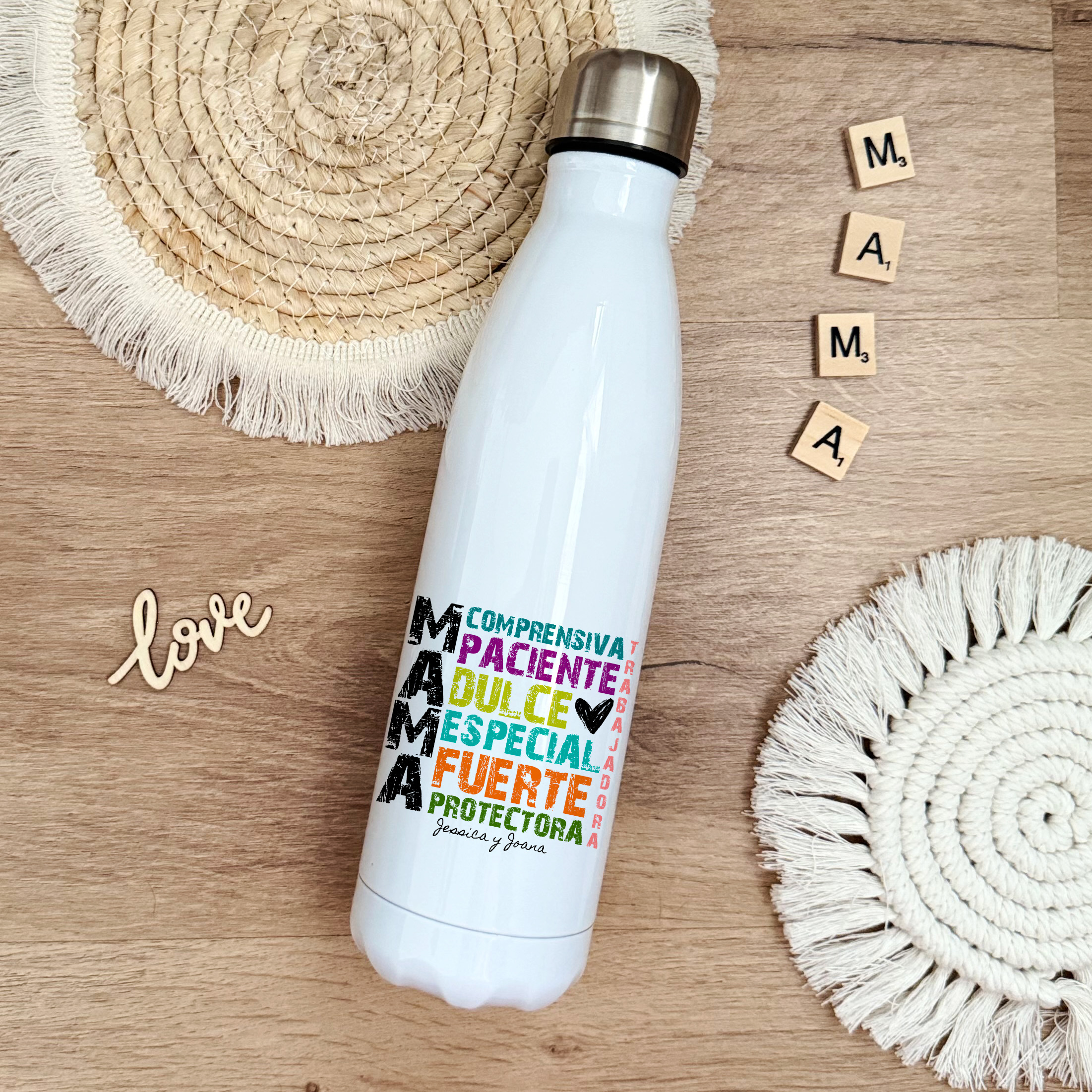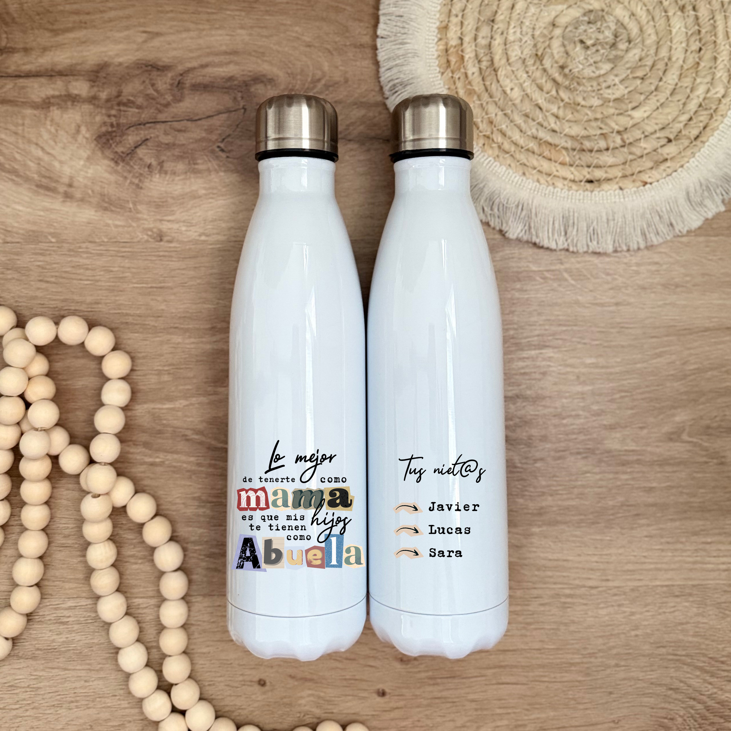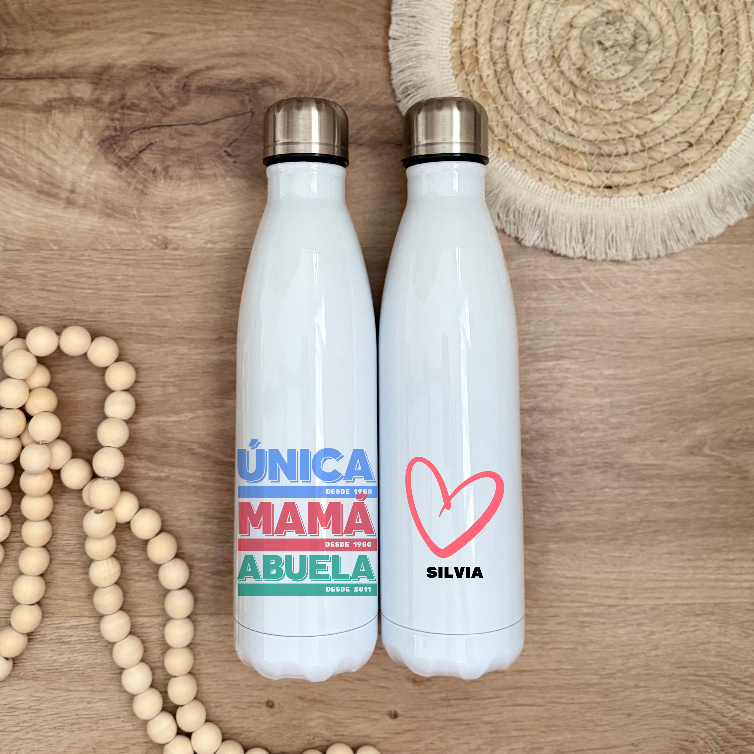 Botellas personalizadas para mamás y abuelas. Cada diseño refleja todo el cariño, la dulzura y la fuerza de esas mujeres que llenan nuestro hogar de amor. Hechas de acero inoxidable resistente y decoradas con frases tiernas y diseños únicos, son ideales para el día a día.